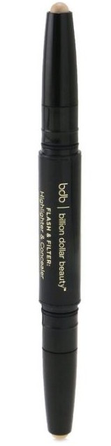 Если вам нравится подача в стике /карандаше, рекомендую присмотреться к Billion Dollar Beauty дуэт Flash & Filter: Highlighter & Concealer. На удивление, нежная кремовая текстура, оттенки и стойкость хайлайтера поражают.