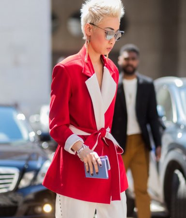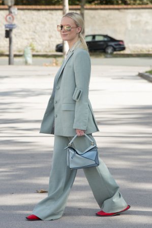 Если рамки вашего дресс-кода не позволяют ничего из вышеперечисленного, выход — яркие аксессуары. Так, героини стритстайла делают ставку на цветные сумки: фиолетовые, лазурные, алые. Самая модная форма сегодня — круглая. Берем на заметку.