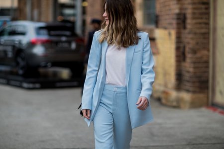 Кто сказал, что дресс-код — это исключительно черный и белый? Модная цветовая палитра в этом сезоне настолько разнообразна, что не попробовать примерить бирюзовый или розовый — почти преступление. Что важно: такой брючный костюм — уже вызов, поэтому блуза и аксессуары, которые вы подберете к нему, должны быть максимально классическими. Например, белоснежная рубашка, черные лодочки и сумка-портфель в тон.