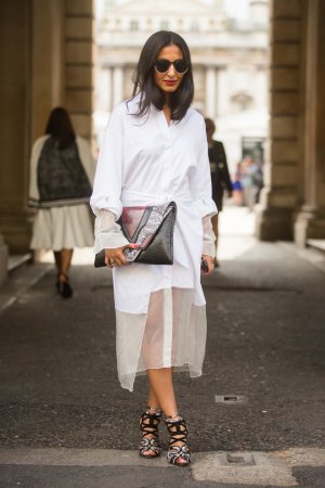 Пусть эта вещь и не новость сезона, но ее актуальность и удобство летом нельзя недооценивать. Сегодня платье-рубашку следует сочетать с широким ремнем в стиле 1980-х, удлиненным кардиганом поверх и клатчем-конвертом.