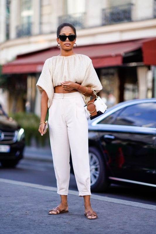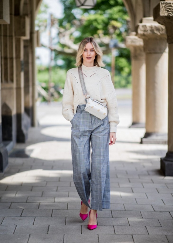 О том, красиво ли это или нет — каждый судит исходя из своих предпочтений. От себя могу сказать, что у высокой талии есть два несомненных плюса. Первый — при хорошей посадке это самые удобные брюки для тех, у кого есть перепад между талией и бедрами. Да, иногда приходит такие брюки подгонять или вообще шить на заказ. Но результат того стоит. А второй плюс — такие брюки очень хорошо помогают выстроить пропорции девушкам невысокого роста. О том, как выстраивать пропорции и «удлинять ноги» я писала в отдельной статье «Как одеваться невысоким девушкам«. А пока просто покажу вам подборку удачных идей с такими брюками.