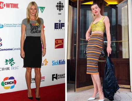 Тип фигуры «груша» — это широкие бедра при узких плечах и тонкой, иногда заниженной талии. Уравновесить и визуально вытянуть низ «грушевидному» типу поможет юбка-карандаш прямого кроя. Хотя некоторые звездные обладательницы такой фигуры с гордостью носят узкие юбки, подчеркивая разницу между плечами и бедрами.