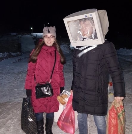 Работаю в компании — интернет-провайдере. Когда один из коллег перед корпоративом сказал: «А давайте в костюмах придем? Так веселее будет!» — все положительно отреагировали на его идею. Я тут же решил найти на «Авито» старый монитор. Оказалось, что я должен поехать помогать закупаться. Уже в супермаркете от коллег узнал, что я единственный буду в костюме. Вот вам фото.