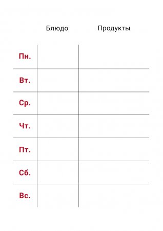 Cоставьте себе меню на каждый день: это поможет не ломать голову каждый раз во время готовки, а также вам будет легче придерживаться плана.