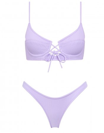 Нескучным раздельный купальник сделают необычная ткань. Выбирайте модели в стиле кроше или из трикотажа в рубчик.
