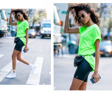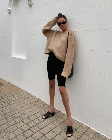 Несмотря на то, что велосипедки — один из главных трендов весна — лето, к их выбору стоит подходить максимально ответственно. Шорты из мягкой ткани могут просвечивать и подчеркивать неровности кожи, поэтому лучше выбирать варианты из плотной лайкры. Велосипедки с принтом отлично скрывают недостатки фигуры. Если вас смущают шорты, то надевайте сверху объемный свитшот или худи, для классического образа подойдет блейзер или рубашка.