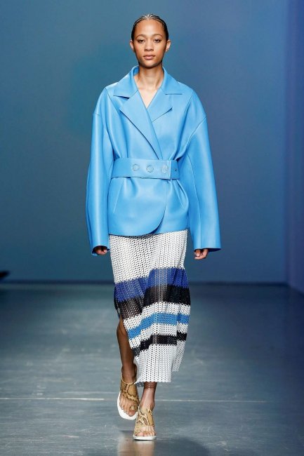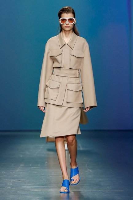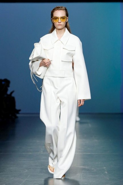 Минималистично — не значит скучно. Это в очередной раз доказывает бренд Boss, дебютировавший на Неделе моды в Милане несколько часов назад. Дизайнеры марки представили идеальный повседневный гардероб, состоящий из красивых, а главное правильных костюмов, несложных асимметричных платьев с широкими поясами и объёмных свитеров. Цветовая палитра была вдохновлена торговым комплексом Hudson Yards в Нью-Йорке, а потому в коллекции так много чистых оттенков белого, небесно-голубого и бежевого.Тренд Монохром; строгий, но асимметричный крой; акцент на талии; объём. Детали Полупрозрачные очки мармеладных оттенков; плетёные босоножки; сумки с бахромой.