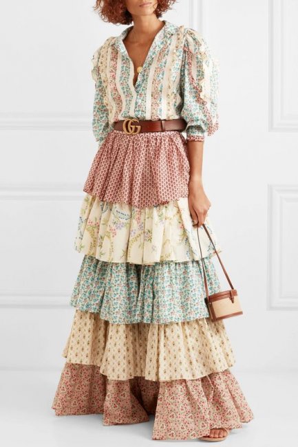 Летом длинные юбки — это не только красиво, но и очень приятно. Тонкие летящие ткани защищают от солнца и создают ощущение прохлады. Как выбрать юбку и какой к ней подобрать верх — об этом и поговорим сегодня.Самое главное в юбке сегодня (да и в образе в целом) — это объем. Не стоит выбирать длинную юбку невнятного кроя, которая будет просто уныло «обвисать» вниз. В тренде юбки, которые имеют объем. Это значит, что либо должен быть крой по типу солнца, либо заложенные у пояса складки. Объем создается плиссировкой. Но самая трендовая модель в этом сезоне — многоярусные юбки. Они шьются из материала, держащего форму, и получаются очень широкими в нижней части. Такую юбку лучше и с объемным верхом сочетать. Хорошо, если это рубашка. Но рубашка или блузка не должна слишком плотно обтягивать тело так, чтобы аж пуговицы внатяжку, как на картинке ниже. Чем свободнее — тем лучше. А единственное место плотного прилегания к телу — талия, подчеркнутая поясом. Рубашка хорошо выглядит не только с формальной юбкой, но и с обычной повседневной, если ткань не слишком обвисает, а держит форму. В любом случае юбка не должна проигрывать верху по плотности и «массивности». Вот тут рубашка явно доминирует и выглядит это не очень. Главный акцент должен быть на талию. Поэтому стараемся выбирать верх, который заправляется. Узкие майки и топы хорошо смотрятся только с очень легкими плиссированными юбками. Исключение — топы в романтическом стиле, которые скорее напоминают корсеты. Жесткий крой, выделенная чашка и идеальная посадка по фигуре. Или же блузки с квадратным вырезом. Облегающие майки, надетые поверх юбки — это ход, который испортит вашу фигуру и сделает ее непропорциональной. Особенно, если майка длинная и опускается существенно ниже талии. Это касается не только тонких маек, но и закрытого верха тоже. Ниже линии талии можем опустить лишь тонкий легкий свитер, который ляжет красивыми складками. Но ничего обтягивающего. Если вам хочется надеть майку с длинной юбкой — она должна быть объемной и не обтягивать тело. Лучше выбирать модели не из трикотажа, а из шелка или вискозы на тонких бретельках. Облегающие футболки — тоже очень спорный выбор. Особенно, если линия низа футболки опускается ниже линии талии. В тренде кроп-топы, но и они не должны быть обтягивающими. Чем свободнее силуэт и больше разница между узкой талией и объемным верхом и низом — тем лучше. Исключение — принтованные комплекты, которые больше похожи на приталенное платье. И не забудьте про пояс. Он может быть как из самой ткани, из которой сшита юбка, (и тогда мы завязываем его на объемный узел или бант), или выбирайте лаконичный пояс из кожи, который больше похож на мужской ремень.