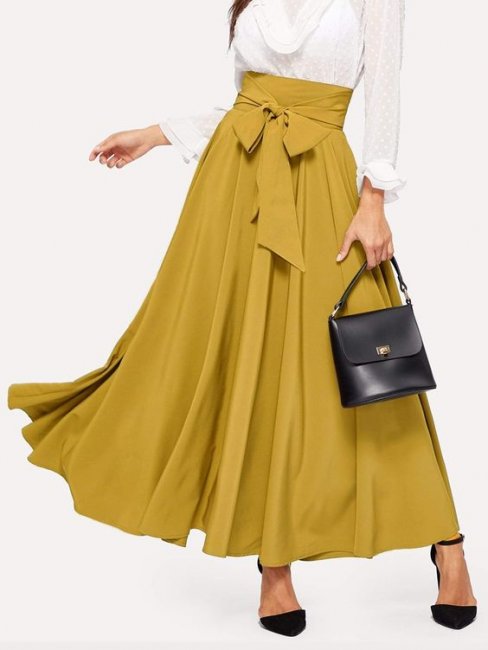 И не забудьте про пояс. Он может быть как из самой ткани, из которой сшита юбка, (и тогда мы завязываем его на объемный узел или бант), или выбирайте лаконичный пояс из кожи, который больше похож на мужской ремень.