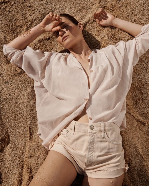 По практичности в летнем гардеробе джинсовым шортам нет равных. Они почти не занимают места в чемодане — это раз. Два — в них можно провести целый день, отправившись с пляжа на ужин в ресторан. И три — сочетаются шорты почти со всем. Утром — с купальником, слитным или раздельным. Вечером — со свитером или свитшотом. Отдельная радость — комплекты для дневных прогулок: грубый деним будет особенно круто смотреться на контрасте с шелковыми рубашками. Сочетание получается нейтральным, поэтому хорошо бы акцентировать образ заметными аксессуарами: микросумкой, яркой авоськой или соломенной сумкой — зависит от ситуации.