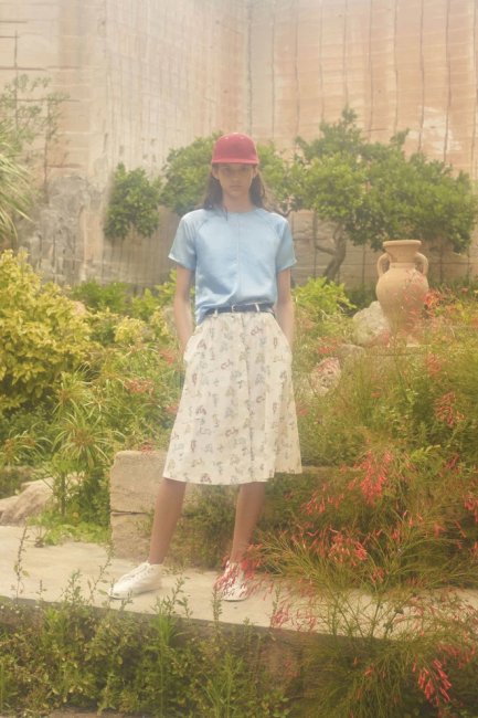 Очевидные сочетания всегда проигрывают таким — немного неожиданным. Так, например, к миди юбке А-силуэта обычно просится соломенная шляпа. Но мы пойдем в обход стереотипам и выберем бейсболку: в таком комплекте удобно гулять целый день.