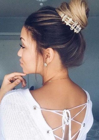 Высокий узел не выходит из моды уже несколько сезонов. И он станет идеальной прической для волос, которые отрастают. Для того чтобы его создать, собери волосы в высокий хвост. Если нижняя часть волос будет выпадать – не страшно.