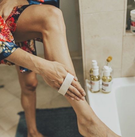 Делать драйбрашинг рекомендуется перед душем. Но твоя кожа, как и щетка, обязательно должна быть сухой. Начинай массировать тело щеткой снизу вверх, начиная с пяток. Пройдись щеткой по голени, колени и бедру — прямыми и длинными движениями.