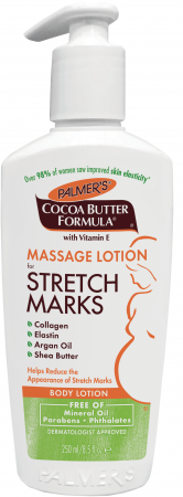Розтяжки – це не кінець світу, і взагалі, якщо об'єктивно, в них немає нічого поганого. Проте, багатьом жінкам хочеться бачити свою шкіру бездоганно чистою. Масажний лосьйон від розтяжок з екстрактом какао від Palmer's позбавить від появи косметичних проблем.Він збагачений унікальною комбінацією таких компонентів, як вітамін Е, какао-масло, олія ши та унікальним комплексом Bio C-Elaste: колаген, еластин, Centella Asiatica, масло солодкого мигдалю та арганової олії.