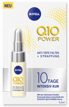Через 10 дней регулярного использования концентрата против морщин NIVEA® Q10 POWER твоя кожа будет выглядеть моложе. Более того, уже в первые дни количество и выраженность морщин уменьшится, а кожа станет более упругой, увлажненной и красивой. Ты будешь поражена тем, что выглядеть молодо реально и без инъекционных процедур.
