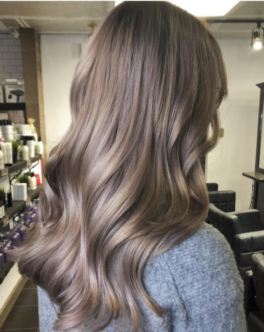 В этом окрашивании очень важно придерживаться нейтральных и холодных тонов, чтобы оставаться верной оттенку. Делается акцент на корни – они могут быть более темные, а по по длине осветляться в технике омбре.