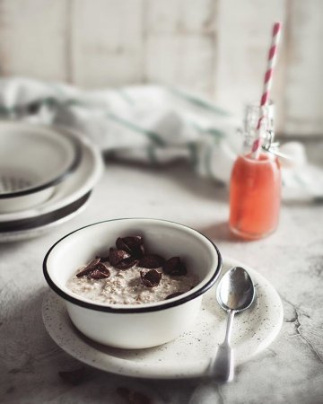 Фудфотограф Дария Калугина предлагает поэкспериментировать с молоком. Вместо привычного коровьего использовать кокосовое. Ингредиенты:6 ст. л. овсяных хлопьевСтакан горячего кокосового молока (50-60)1 ч. л. кокосовой стружки3 ст. л. шоколадных хлопьев (лепестков)1 ст. л. медаПриготовление:Заливаем овсяные хлопья молоком, добавляем мед и кокосовую стружку, накрываем блюдцем и ждем минут 10-15. Посыпаем хлопьями, едим.