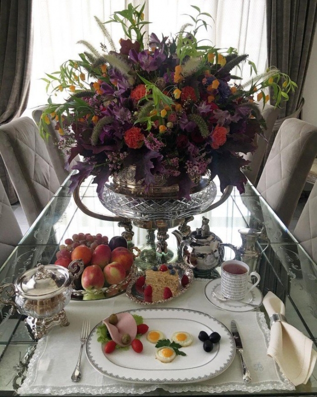 Однако Яна Рудковская придерживается совершенно иной точки зрения. Ее завтраки тщательно сервированы, элегантны и не поражают изобилием блюд. Один из недавних звездных завтраков привлекает особое внимание, поскольку с красивой картинкой продюсер отметила, что пришли холода, однако на тему питательности представленных изысков можно долго дискутировать.