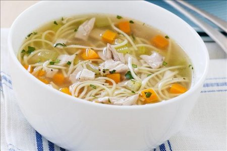 КУРИНЫЙ СУПНеожиданно? А ведь именно куриным бульоном в старину лечили многие простудные заболевания. Пережитки прошлого, скажете вы. А ученые парируют, что многочисленные исследования доказали – куриный суп действительно облегчают простуду. Легкое куриное мясо содержит цистеин, компонент ацетилцистеина. Это отхаркивающее средство, которое добавляется во многие препараты от кашля. Кроме того, американские исследователи из Университета штата Небраска обнаружили, что ингредиенты куриного бульона предотвращают миграцию так называемых нейтрофильных клеток, которые вызывают воспалительные реакции. Горячий куриный суп также улучшает дыхание и обеспечивает организму дополнительную жидкость и солевой баланс.