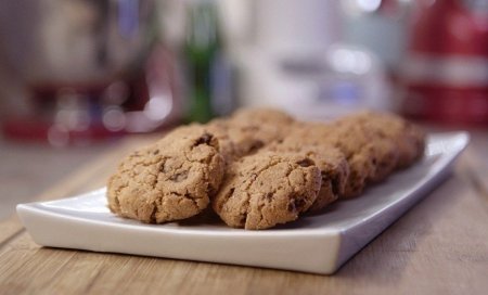 Вам понадобится:2 яйцаминдальная мука - 150 гчашка ореховои пастыщепотка разрыхлителя 4-6 долек горького шоколадаСпособ приготовления:1. Разогреваем духовку до 180 градусов. 2. Смешиваем ореховую пасту, яица, разрыхлитель и шоколад, поломанный на кусочки. Взбиваем миксером 3. Формируем шарики из полученной массы, затем придаём им форму печенья. 4. Выпекаем 15 минут, достаём из духовки и даём время печеньям остыть. Приятного аппетита!