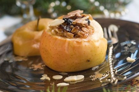 ЗАПЕЧЕННЫЕ ЯБЛОКИ С ОРЕХОМ И ИЗЮМОМВырезаем серединку настолько, насколько много хотим там начинки. Смешиваем все орехи, которые есть дома, немного измельчаем и заливаем горячей водой на 15-20 мин (грецкий, кедровый, фундук), смешиваем с изюмом и/или мелко нарезанными черносливом/курагой и складываем в яблочки. Туда ложку мёда и в духовку 200 градусов на 20 минут.