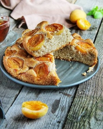 Автор фото и рецепта Марина Баранова: instagram.com/marina._.baranova/ Ингредиенты: Мука 180 грРазрыхлитель 1,5 ч. л.Корица 1/2 ч. л. Сливочное масло 85 грСахар 120 грЯйцо 1 штМолоко 120 грАбрикосы 500 гр Процесс приготовления: 1. Включить духовку на прогрев на 175 градусов. 2. В небольшой чаше соединить муку, разрыхлитель и корицу. Хорошо перемешать.3. В другой чаше, большего размера, смешать миксером масло комнатной температуры и сахарный песок. Добавить яйцо, еще взбить, затем влить молоко и снова взбить. Выключить миксер. Высыпать сухую смесь из первой чаши и перемешать лопаткой до однородности. 4. Разъемную чашу смазать холодным сливочным маслом и присыпать мукой. Выложить в нее тесто. Абрикосы разделить на половинки и выложить поверх теста. 5. Выпекать при температуре 175 градусов 10 минут, затем снизить температуру до 155 и выпекать еще 30-35 минут, проверяя готовность зубочисткой. Дать остыть и вынуть из формы.