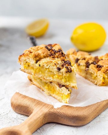 Автор фото и рецепта Дарья Близнюк: instagram.com/zhabcka/ Ингредиенты:Тесто:Масло сливочное 100 грСметана 300 грМука 300 грразрыхлитель 10 грНачинка: Лимон 2 штАпельсин 1 шт (лимон апельсин примерно 700 гр)Сахар 120 грКрахмал кукурузный 30 грЯблоки кислые плотные 4-5 штШоколад и орехи по желанию Процесс приготовления:Тесто:1. Соединить все ингредиенты и замесить тесто, положить в пакет и убрать в морозилку на час, лучше два. Если сильно подморозите, то можно просто на крупной терке натереть тесто для низа пирога и верха, а можно нижнюю часть раскатать скалкой и сформировать невысокий бортик, заполнить начинкой, а сверху просто натереть или порвать руками и побросать кусочки теста.2. В форму для выпекания положить пергамент и потом формировать пирог или использовать разъёмную форму.Начинка и пирог:1. Снять цедру с половины апельсина, удалить остальную кожуру с цитрусовых и косточки, все положить в блендер и измельчить в пюре, добавить крахмал и сахар, взбить до однородного состояния. Яблоки очистить от семян и порезать дольками.2. Основу из пирога положить дольки яблок, залить цитрусовым пюре, сверху натереть или порвать кусочками вторую часть теста. Можно добавить шоколад и орехи по желанию.3. Выпекать до золотистой корочки минут 40-60 минут при 180-200С. Полностью остудить и только после этого доставать пирог и резать.