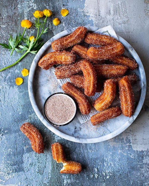 Автор фото и рецепта Агния: instagram.com/mykitchenrulez/ Ингредиенты: 475 мл воды40 г сливочного масла25 г сахара5 мл ванильного экстрактащепотка соли260 г муки2 больших яйца1,5 литра растительного масла для жарки? Для обсыпки: 130 г сахара1,5 ч л корицы Процесс приготовления: 1. Нагреть воду, масло, сахар, ваниль и соль в сотейнике, пока масло не растает и жидкость не закипит. Всыпать всю муку разом и активно перемешивать до тех пор, пока масса не станет однородной, без комочков муки.?2. Остудить 5-10 минут, затем добавить по одному 2 яйца, как следует перемешать, легче с помощью миксера.3. Переложить тесто в кондитерский мешок с фигурной насадкой. 4. Разогреть во фритюрнице либо в кастрюле растительное масло до температуры 190С. Выдавить 5-6 пончиков из кондитерского мешка в разогретое масло (удобно отрезать кончик выдавленного чуррос ножницами) и жарить около 10 минут, переворачивая каждый чуррос, чтобы он равномерно покрылся корочкой. Готовые пончики выложить на бумажную салфетку. ?5. В тарелке смешать сахар и корицу и обвалять чуррос в сахарно-коричной смеси. Готовые пончики так же вкусно обмакивать в горячий шоколад.