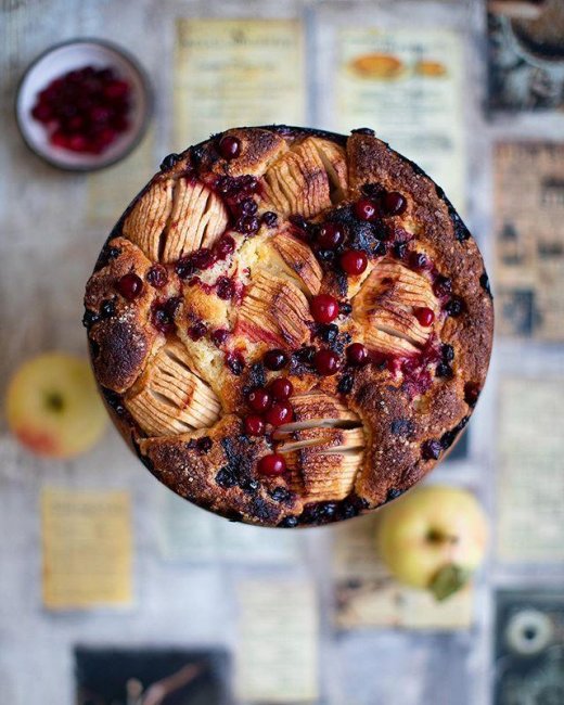 Автор фото и рецепта Агния: instagram.com/mykitchenrulez/ Ингредиенты: 250 гр сливочного масла комнатной температуры250 гр сахара250 гр муки4 яйца3-4 средних яблока1 ст. л. лимонного сока2 ст. л. коричневого сахарагорсть ягод клюквы Автор фото и рецепта Агния: instagram.com/mykitchenrulez/ Процесс приготовления: 1. Духовку разогреть до 180 градусов.2. Подготовить круглую форму для выпечки, смазав ее маслом и присыпав мукой, дно на всякий случай выстелите пергаментной бумагой.3. Масло взбивать с сахаром не менее 3-х минут до появления пышной белой массы. Добавить яйца по одному, каждый раз тщательно взбивая. Вмешать муку, вылить тесто в подготовленную форму. 4. Яблоки очистить от кожуры и сердцевин, нарезать дольками, сбрызнуть лимоном и посыпать коричневым сахаром. Выложить яблоки сверху на тесто и затем добавить ягоды. 5. Выпекать около часа, в зависимости от диаметра формы. Готовность проверяем деревянной палочкой, воткнутой в центр пирога — она должна выходить полностью сухой.