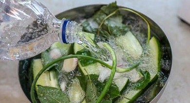 В отличие от других рецептов малосольный огурцов, здесь используется не вода, а минералка. Как обычно, подготовленные огурцы укладывают в подходящую по объему посуду, добавляют крупную нейодированную соль и пряную зелень - листья хрена, черной смородины, вишни и зонтики укропа. Не забудьте про зубчики чеснока, с ними огурцы получатся ароматнее. Малосольные огурцы на минералке будут готовы уже на следующий день. Пробуем?