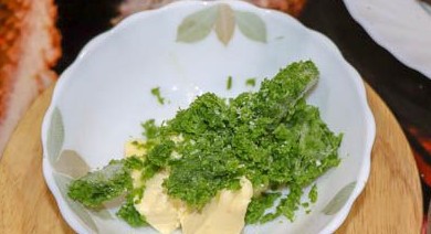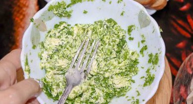 Сливочное масло заранее достать из холодильника, оно должно быть комнатной температуры. Чесночные стрелки пропустить через пресс. Вместо стрелок можно использовать зубчики чеснока.