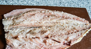 2 скумбрии - отрезать головы, хвосты и плавники, выпотрошить и вынуть косточки, распластав на такие треугольники.