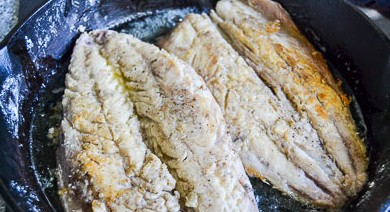 Посолить - поперчить, обвалять слегка в муке и обжарить на оливковом масле (оливковое - для пущей «итальянскости»). Залить рыбку томатным соусом, потомить буквально 7-10 минут.