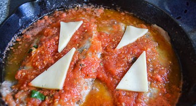 Когда есть свежие сладкие помидорки, можно сделать рыбку в натуральном, самодельном томатном соусе. А если есть еще и свой базилик, то обычная скумбрия превращается в пищу богов. С итальянским акцентом. Вот правда. Для рецепта вам потребуется: помидоры - 4-5 шт. зеленый базилик скумбрия - 2 шт. мука для панировки соль, перец - по вкусу растительное масло для жарки. Рецепт приготовления: 4-5 помидорок обесшкурить, мякоть натереть на тёрке в кашу. Довести до кипения, добавить по вкусу соли и сахара, а также листики зеленого базилика. Отставить пока с плиты. 2 скумбрии - отрезать головы, хвосты и плавники, выпотрошить и вынуть косточки, распластав на такие треугольники. Посолить - поперчить, обвалять слегка в муке и обжарить на оливковом масле (оливковое - для пущей «итальянскости»). Залить рыбку томатным соусом, потомить буквально 7-10 минут. Выложить на каждую рыбку ломтики мягкого сыра, в идеале моцареллы. Отключить под сковородкой огонь, закрыть крышкой, дать немного настояться и чтобы сыр подплавился. И можно наслаждаться. И даже не подумаешь, что это обычная скумбрия.