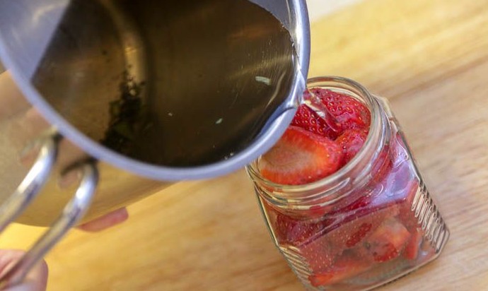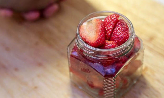 Залить остывшим рассолом и убрать в холодильник на ночь. Примерно через 8-10 часов малосольную клубнику можно пробовать. Приятного аппетита!