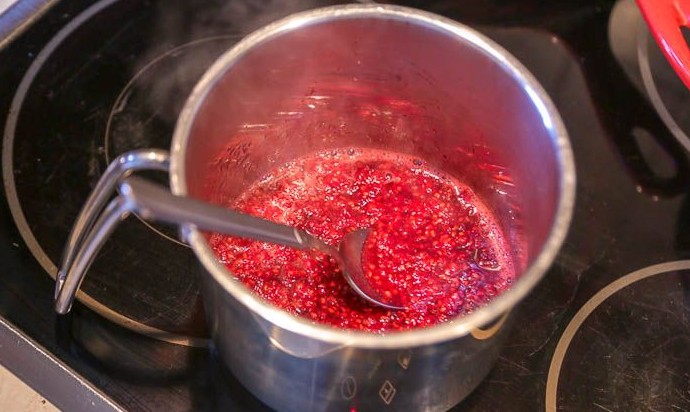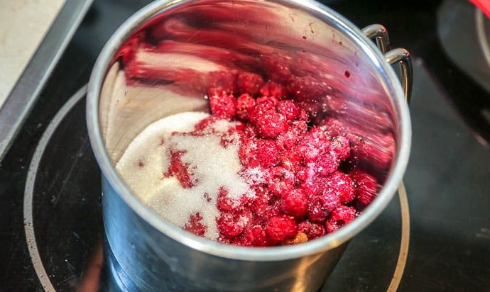 Дождаться, когда малина даст сок и проварить 1-2 минуту.
