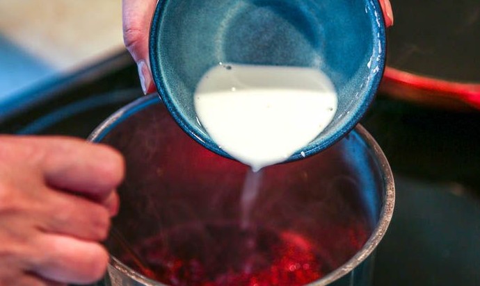 Если хотите получить гладкий соус без косточек, то малину надо прогреть, протереть через сито, а затем добавлять сахар и крахмал.