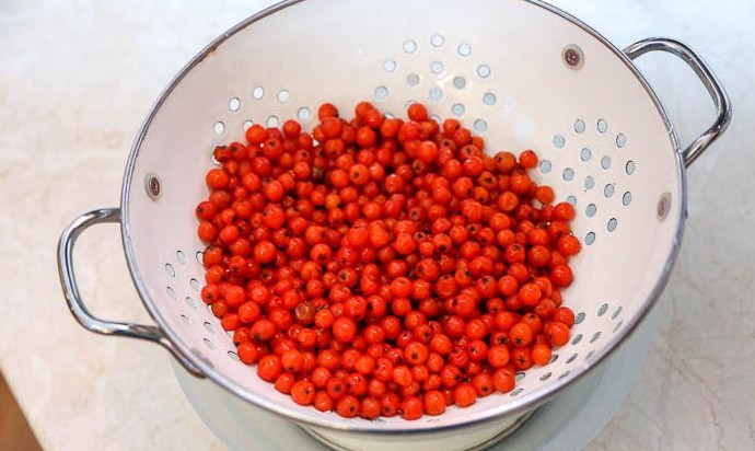 Если рябина собрана до морозов, то её предварительно надо заморозить в морозильной камере, предварительно отделив ягоды от веток, промыв и обсушив. Замороженные ягоды ошпарить кипятком, откинув на дуршлаг. По желанию рябину можно бланшировать 3-4 минуты, чтобы на ягодах полопалась кожица и они дали больше сока уже в банках.