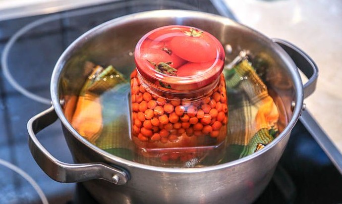 Залить кипятком, прикрыть крышками и дать полностью остыть.
