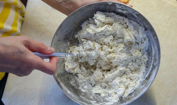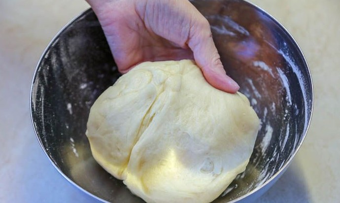 а затем руками или миксером, пока тесто не станет гладким, эластичным и перестанет липнуть к рукам. Скатать тесто в комок.