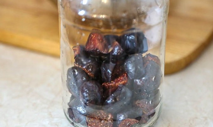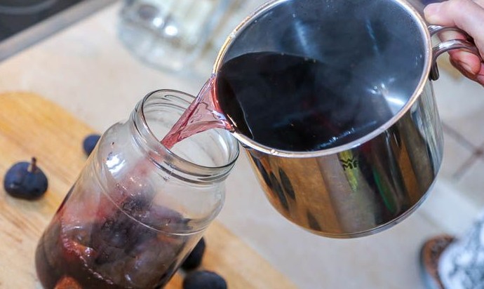 Порезанный инжир сложить в подготовленные для консервирования банки, наполнив их на 1/2-2/3 объема.