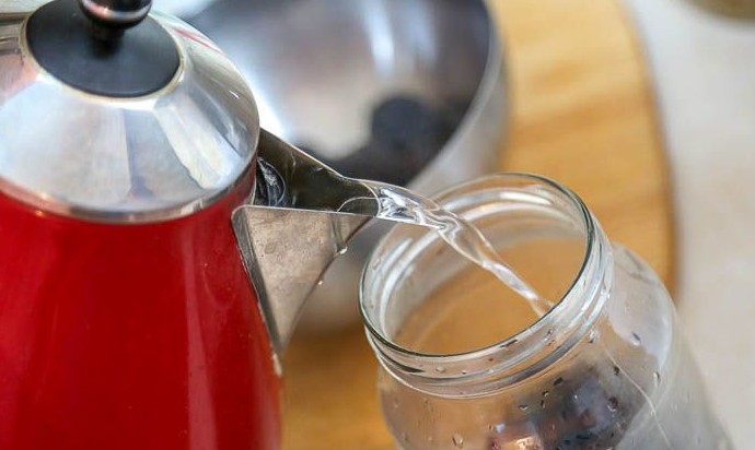 Вскипятить воду и залить банки с инжиром по самое горлышко. Прикрыть крышками и оставить на 20 минут.
