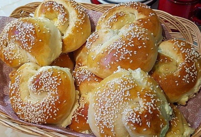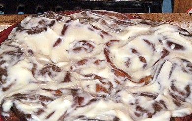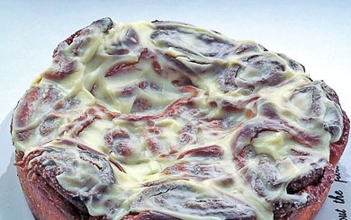 Горячие булочки намазала сверху глазурью и остудила в форме. Для глазури смешала творожный сырок (например, Violette) с сахаром и добавила немного сметаны (до сметанообразного состояния).