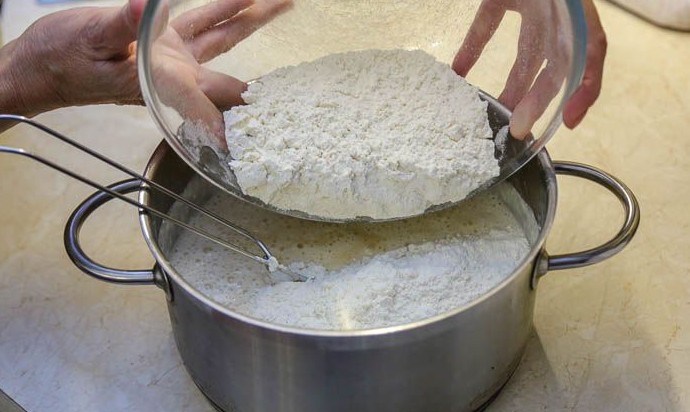 Следом просеять оставшуюся муку, сахар,