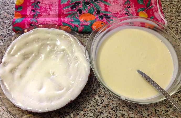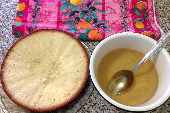 Для того чтобы торт был влажным и нежным, коржи пропитывают сахарным сиропом. Сахар заливают водой и проваривают на слабом огне 5 минут после закипания. По желанию, сироп можно ароматизировать коньяком или фруктовой эссенцией.