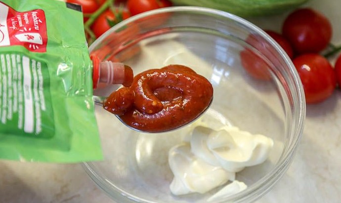 Майонез размешать с кетчупом и горчицей. Горчица подойдет любая на ваш вкус.