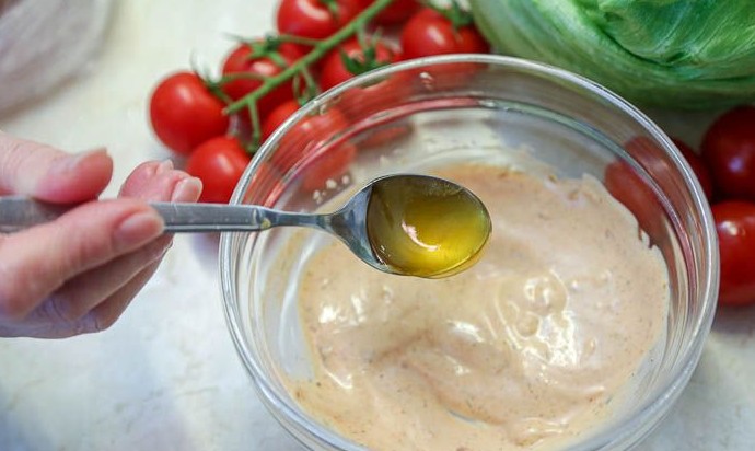 Приготовление салата лучше начинать с соуса. Он должен немного настояться, чтобы его вкус полностью раскрылся.