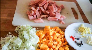 В этом блюде главная роль отводится соусу на основе сливок и куриной грудки с добавлением кусочков тыквы, приправленных имбирем, чесноком и базиликом. Готовится соус быстрее, чем описывается рецепт.