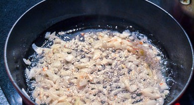 Лук нарезать и обжарить до мягкости, добавить муку и обжарить до того цвета зажарки, который нравится (можно порумянее, тогда соус будет темнее).