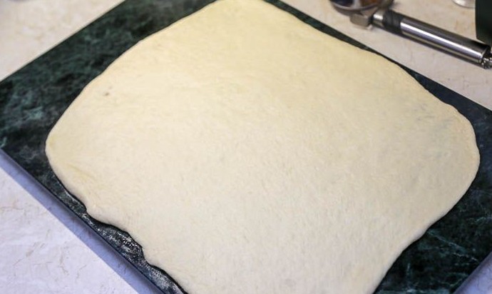 Из второй половины раскатать скалкой прямоугольник размером 25х30 см. Кстати, можно раскатать тесто на пищевой пленке, легче будет скатывать рулет.